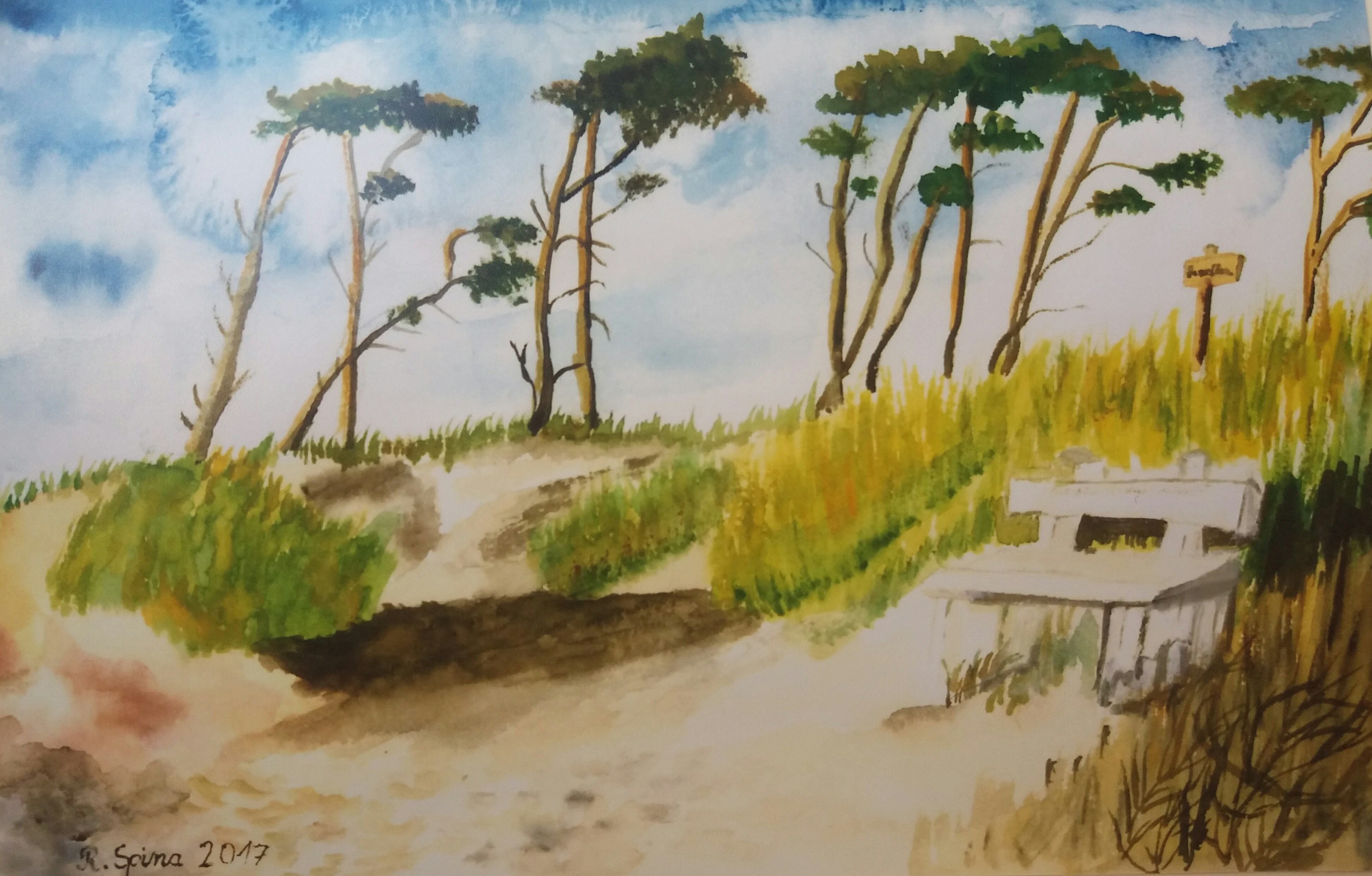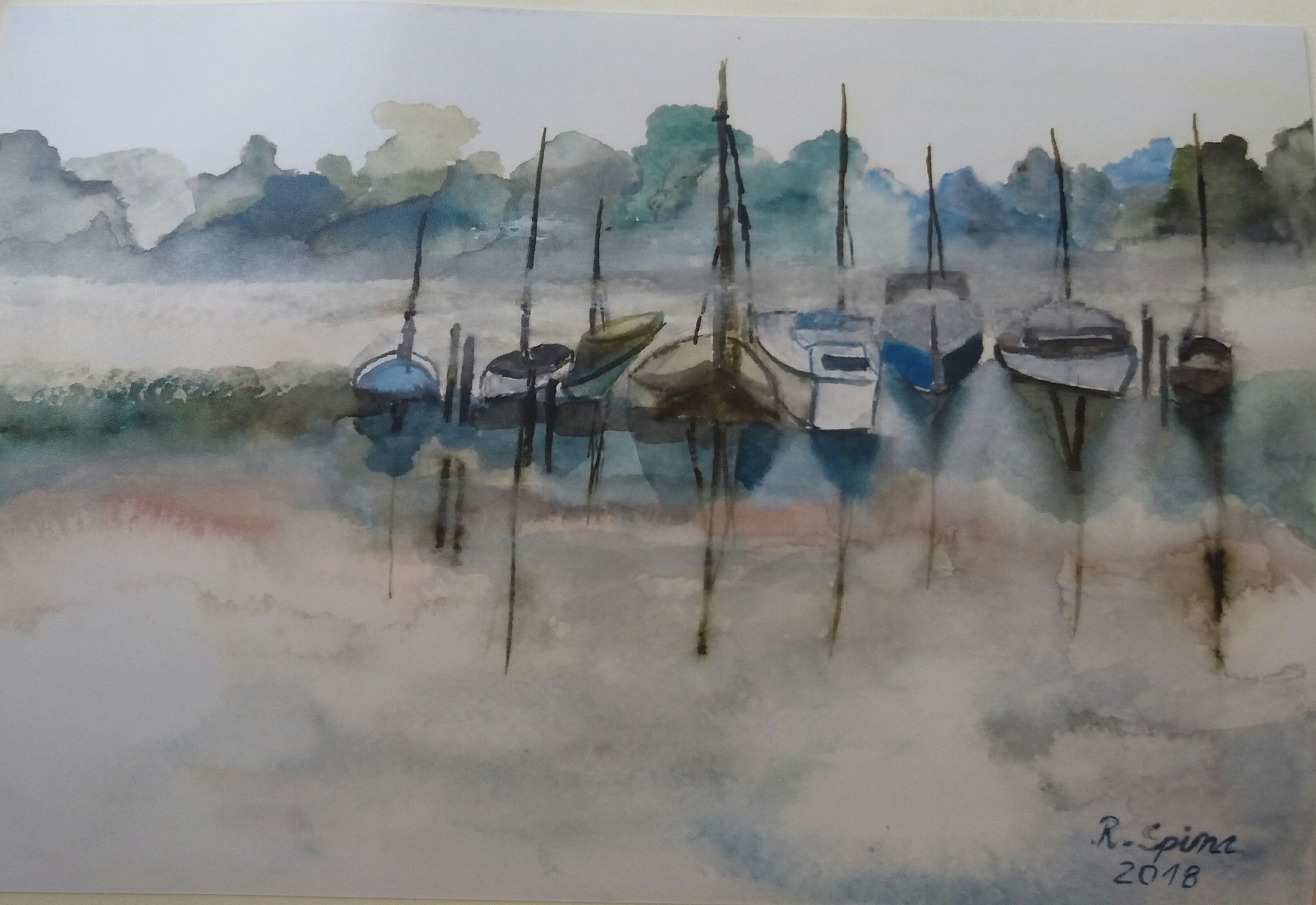 Della pittura di Rita Spina, Juan Arias Gonano scrive: “Negli anni il suo interesse per la pittura di paesaggi, interpretati in chiave romantica e con forte motivo espressionista, si svilupperà sbocciando in una serie di dipinti dove la maestosità della natura è il tema principale, con serie dedicate ai cieli con voluminose nuvole, ai tramonti e alle marine nordiche, agli alberi e alle gigantesche montagne innevate. Le sue opere sono fortemente impregnate di pigmenti diluiti sapientemente, che non sono altro che un modo d'affermare la dualità costantemente e perennemente presente nello spirito germanico, una dualità che intrinsecamente contiene malinconia, solitudine meditativa e un'assoluta necessità di libertà”.